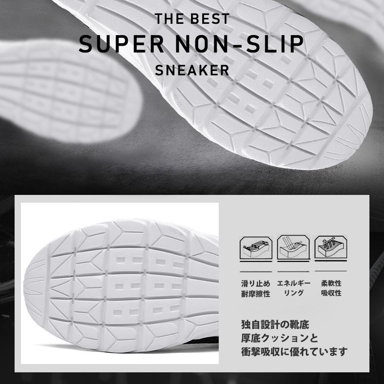 【高いクッション性】ソールは凸凹で、踵に衝撃吸収技術を設計し、着地時の衝撃を分散させて、クッションの効果を高めて、足と膝を安全に守ります。