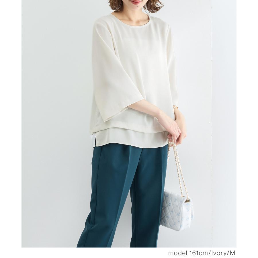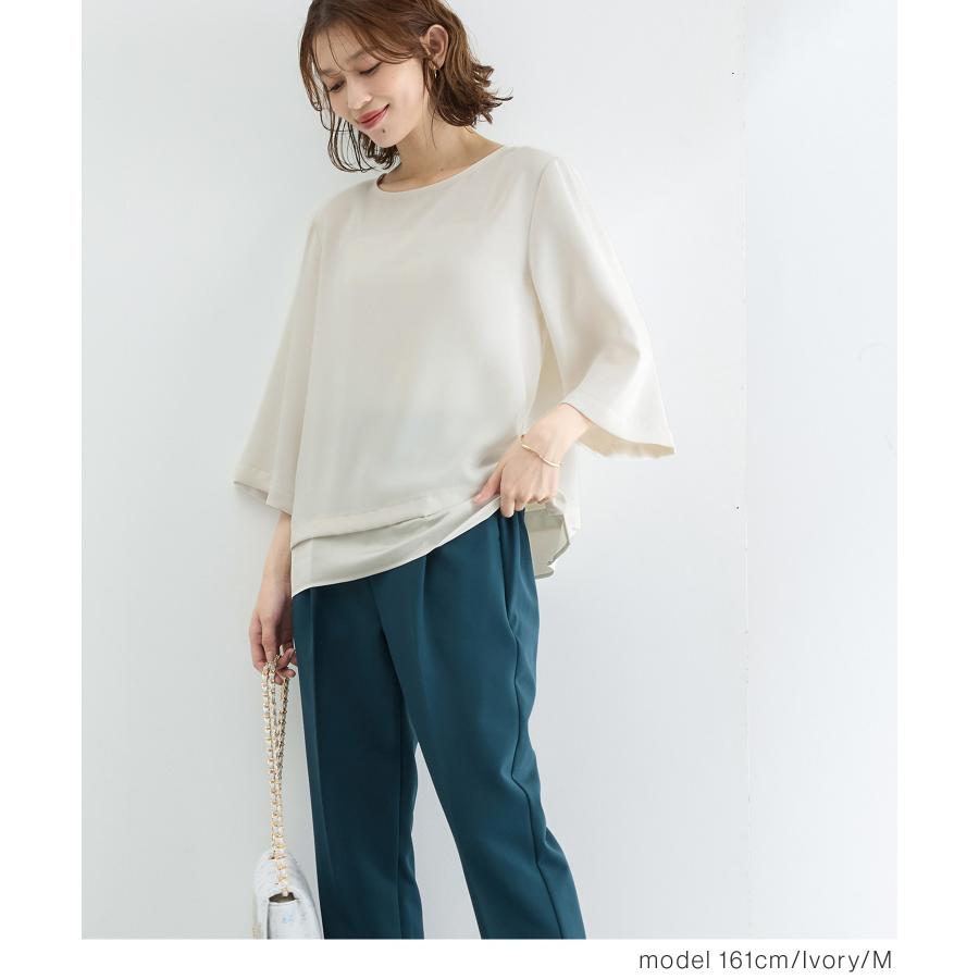商品カテゴリ:5340610106 トップス ブラウス オフィス きれいめ レイヤード風ブラウス レイヤード風 7分袖 フレア袖 無地 ツイル サテン スリット フェミニン 秋 白 黒 カテゴリ105007 tops 7分袖 7部袖 7分丈 七分袖 8分袖 8部袖 8分丈 八分袖 9分袖 9部袖 9分丈 九分袖 半端袖 FP502 おしゃれ オフィスカジュアル 通勤 通勤スタイル 通勤服 大人女子 きれいめカジュアル きちんと服 オフィス服 会社 オフィススタイル かっちり 清潔感 コンサバ 上品 大人 20代 30代 40代 アラサー OL トレンド 流行 ドレープ感 7分袖ブラウス ブラウス7分袖 フレア フレアスリーブ ヒラヒラ フリル袖 袖コンシャス ワイド袖 ワイドスリーブ デザイン袖 デザインスリーブ 袖フリル 無地ブラウス 無地トップス ツイル素材 光沢 スリット入り サイドスリット 可愛い 清楚 大人可愛い Sサイズ S 小さいサイズ Mサイズ Lサイズ LLサイズ LL 大きいサイズ シーズン晩夏初秋 夏 夏物 夏服 夏秋 初秋 秋物 秋服 新作 新着 アイボリー ホワイト ブラック ネイビー 紺 ブルー 青